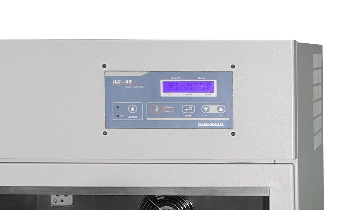 Panel de control de policarbonato, con teclado de membrana (soft Touch) altamente resistente al polvo y la humedad ambiente. Pantalla de cristal liquido LCD de 1 líneas por 20 caracteres que indica: temperatura máxima, temperatura mínima y temperatura real.