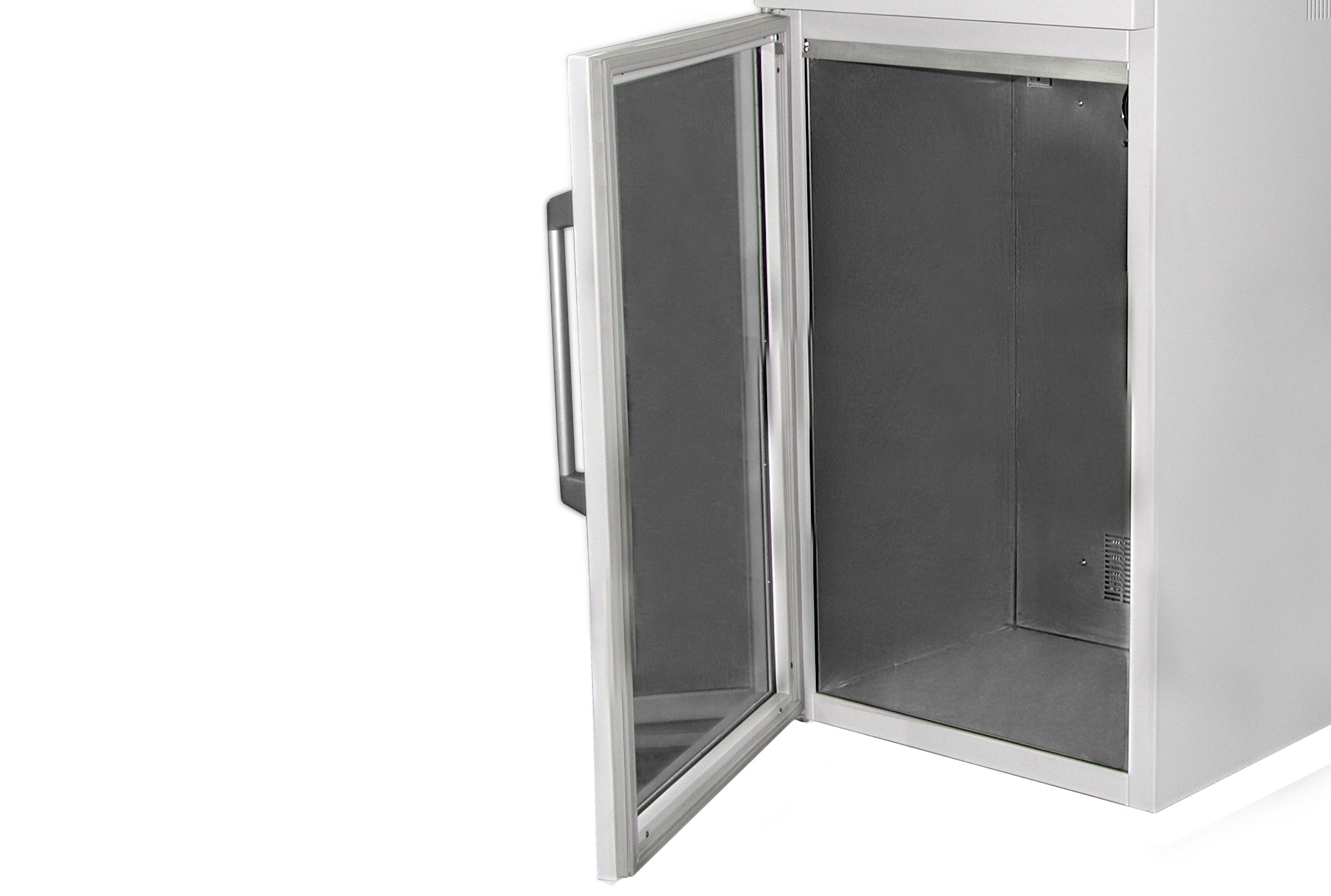 Alarma por alta o baja temperatura y puerta abierta.