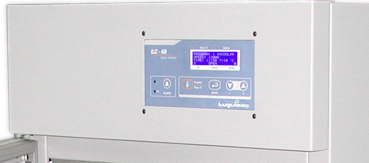 Panel de control de policarbonato, con teclado de membrana (soft Touch) altamente resistente al polvo y la humedad ambiente. Pantalla de cristal liquido LCD de 1 líneas por 20 caracteres que indica: temperatura máxima, temperatura mínima y temperatura real.